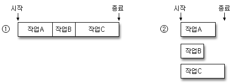 - 하나의 프로세스에서 한 번에 하나의 일을 처리하는 것이 아니라 동시에 많은 일을 처리할 수 있음.