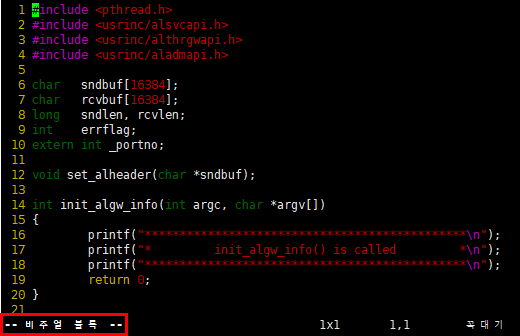 4. G(파일 최하단으로 커서 이동 명령어) 입력하여 코드 최하단까지 비주얼 블록 생성.