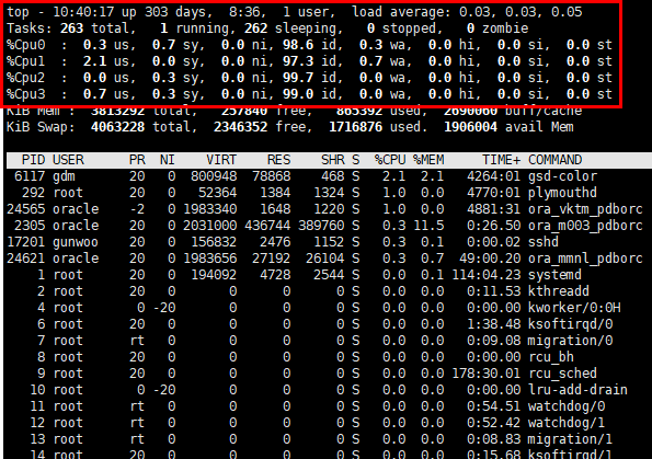 -"$ top" 입력 후 1 입력하여, 사용 중인 core 확인.