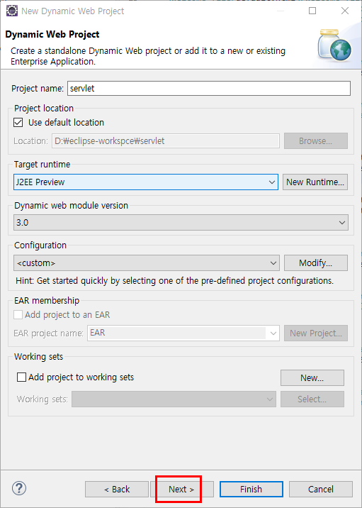 4."\eclipse-workspce\servlet\WebContent\WEB-INF\web.xml" 설정.
