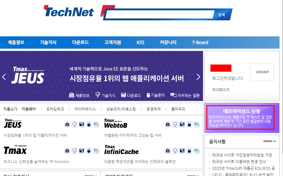 1.테크넷 접속.(https://technet.tmaxsoft.com/ko/front/main/main.do)