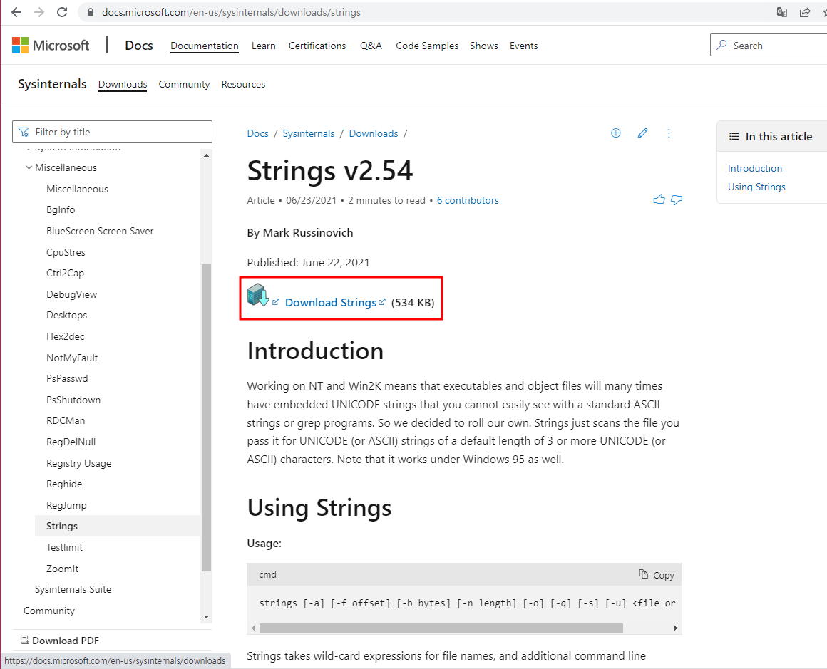 Strings v2.54 - Search for ANSI and Unicode strings in binary images.