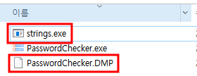 1.*.DMP 파일이 존재하는 경로로 다운로드한 "strings.exe" 파일을 이관 후 해당 경로에서 cmd 실행.