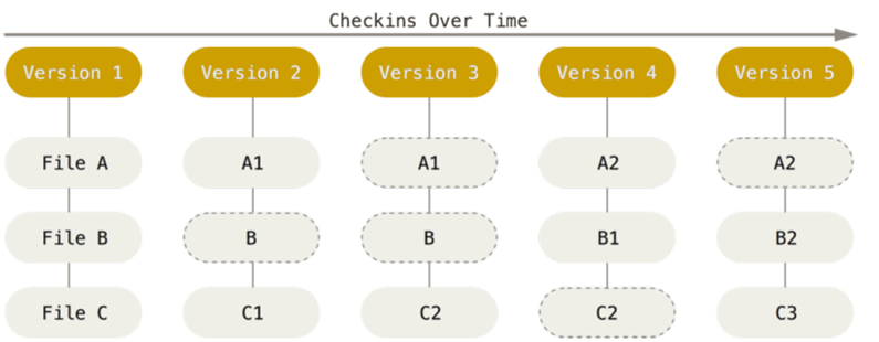 - 즉, 이전 상태의 파일에 대한 링크만 저장하기 때문에 사이즈가 작고 속도가 빠르다.
