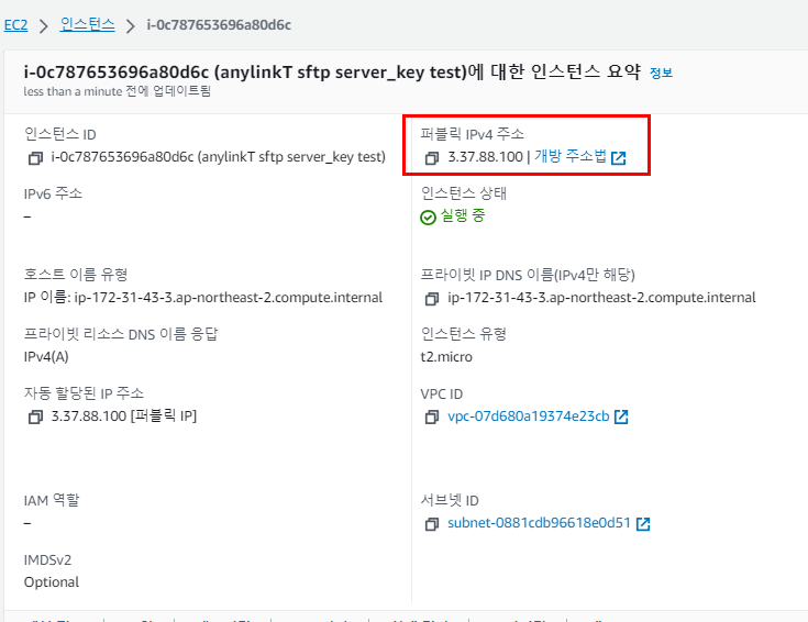 $ ssh -i anylinkT_sftp.pem ubuntu@3.37.88.100