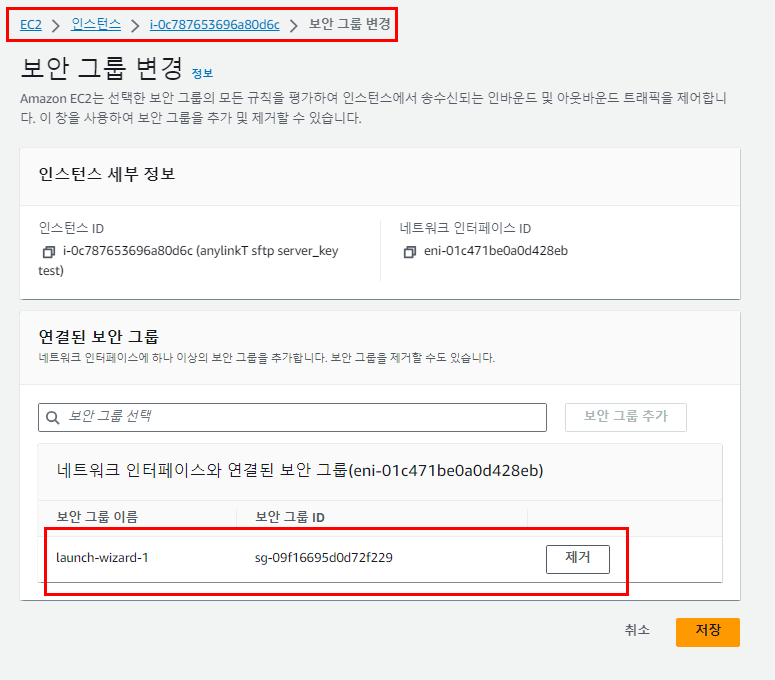 *인스턴스에 보안그룹을 등록.