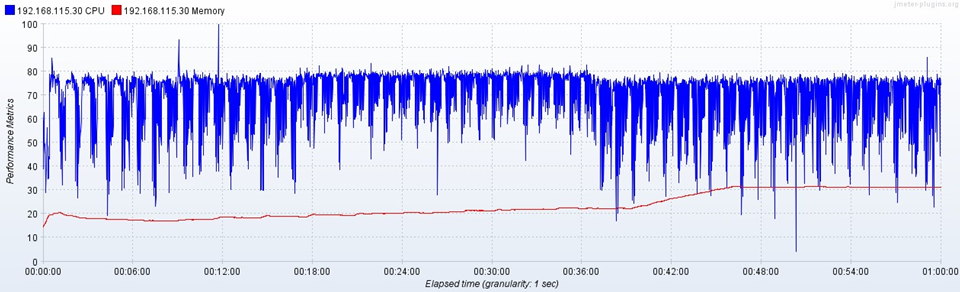 - 로컬 시스템(CLIENT)의 JMeter PerfMon 플러그인을 사용하여, 원격 시스템(SERVER)의 Server Agent와 연결.