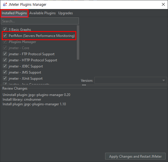 1.JMeter의 Plugins Manager에서 PerfMon 설치.