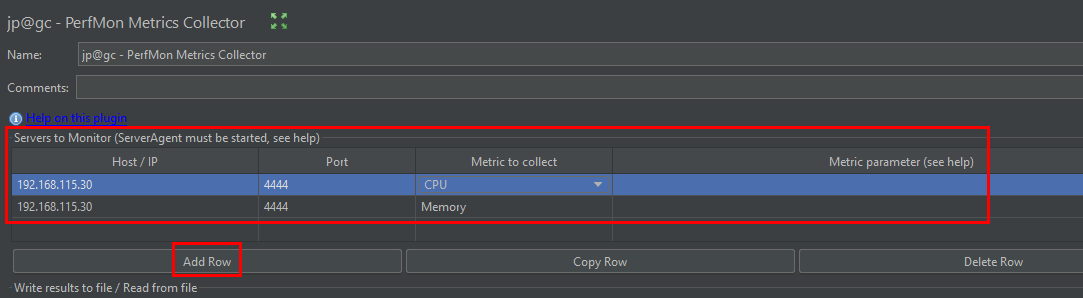 3.추가한 Listener(PerfMon Metrics Collector) 탭에서 원격 시스템의 정보를 입력.
