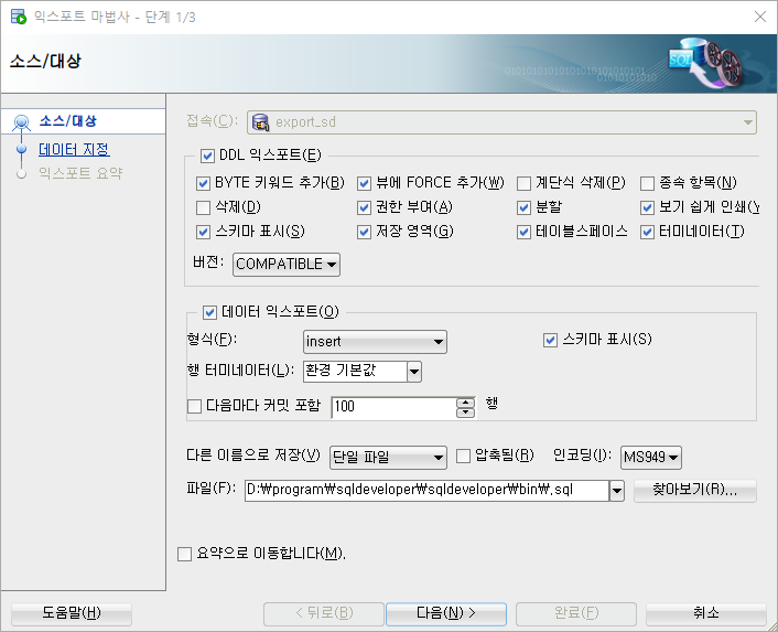 - SQL Plus 접속, *.sql 실행 작업은 링크를 참고한다.